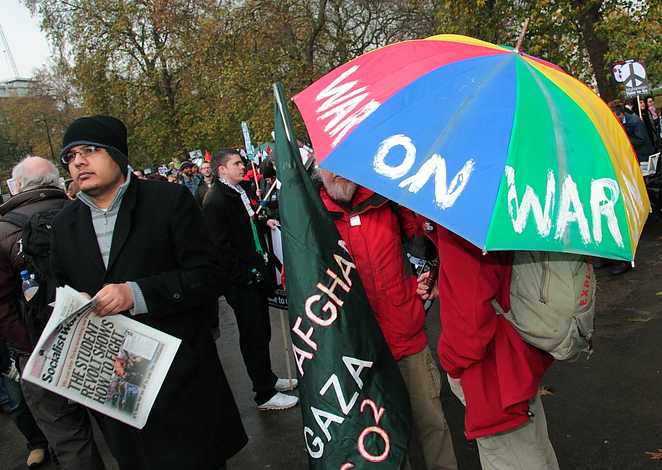 There clearly had been volume placard manufacture in the last few weeks together with hours of kneeling on the kitchen floor with felt tip pens making the latest home-made, recycled, nuclear-free zone banners. All of which was espousing a wish to end the war. In these current times of austerity measures and spending cuts, the weather worn, and impotent plea to end the war was modified to highlight what else could be done with the money. Some of the speakers were at great pains to point out that the cause really was humanitarian, but we could build more hospitals if we were not in Afghanistan, and for that matter, cover the university fees of thousands of students over the next ten years. An opportunist ploy to spread support into the vocal and active student population – perhaps get some reflected interest.