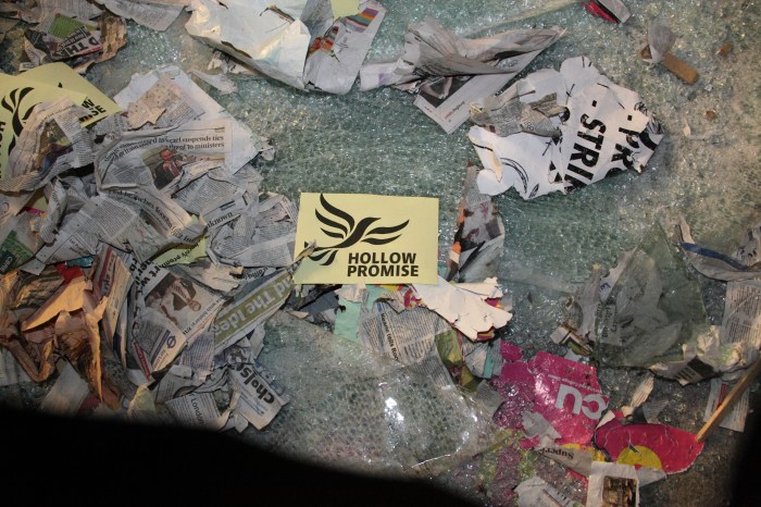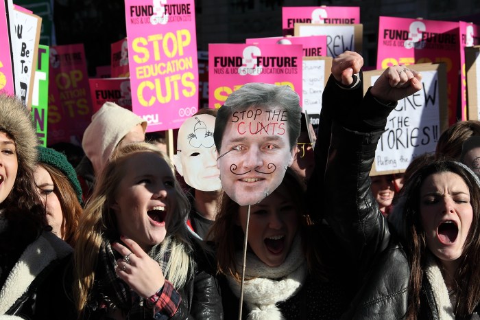 Within a month of the CSR, the furore over University fees, was country-wide. This was not just a debate with the Tories or the Coalition – this was personal. Clegg promised to get rid of fees – he “sold his soul to the devil” in return for the power, he said anything to pay for that trip…and now it is payback time.