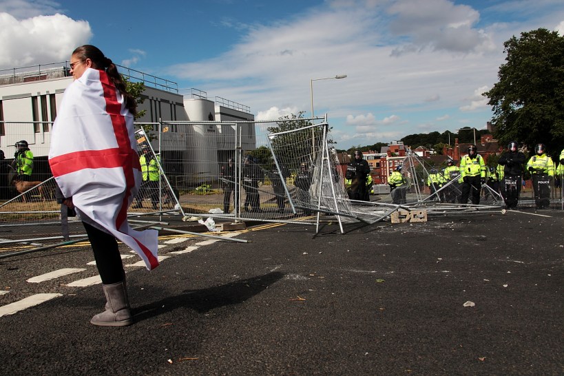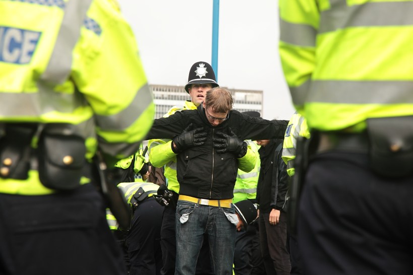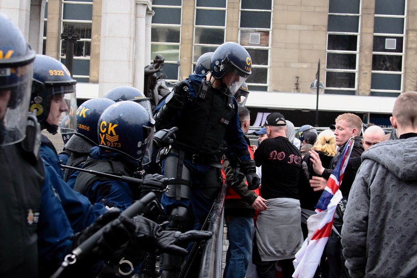 The aftermath of the escape by a number of the EDL through the flimsy barriers erected in Dudley to contain their protest. 17 July 2010
