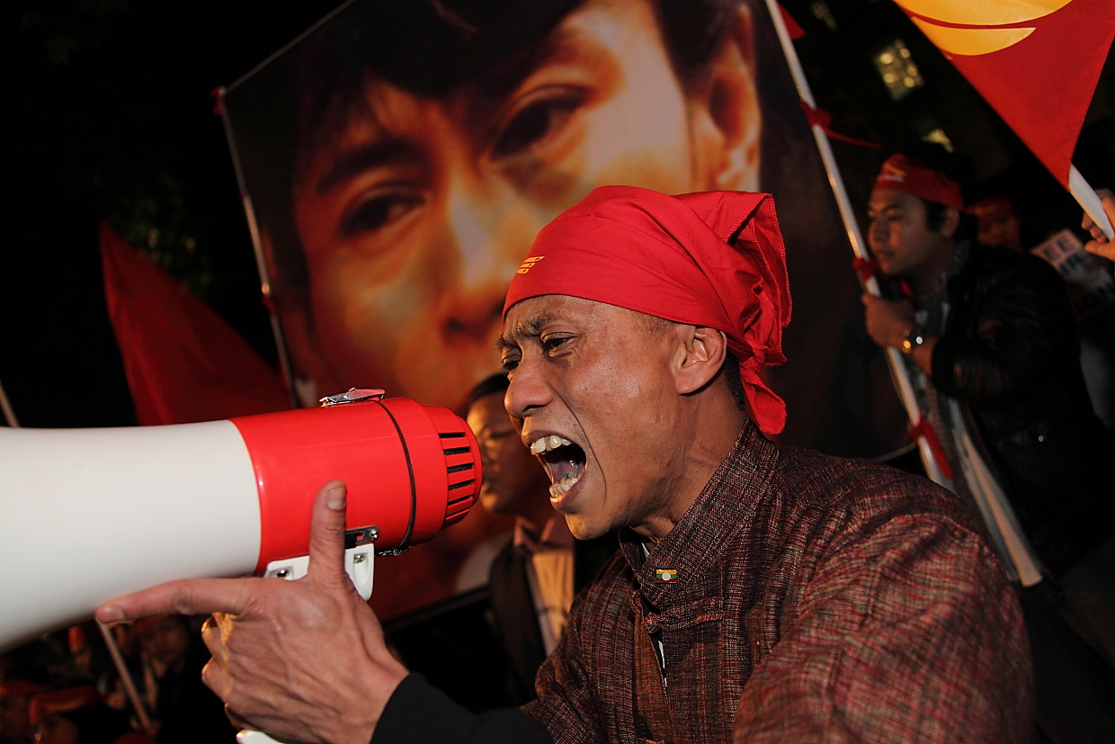 A demonstration of Burmese nationals marched through Central London demanding the release of Aung San Suu Kyi. 6 November 2010