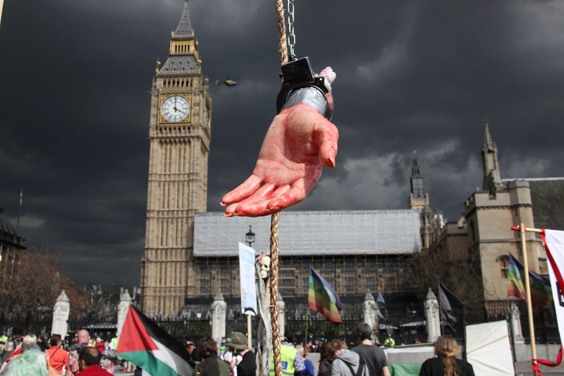 Days before the General Election, the May Day "Power to the People's Assembly rallied outside Parliament, which involved the hanging of Gordon Brown. 1 May 2010