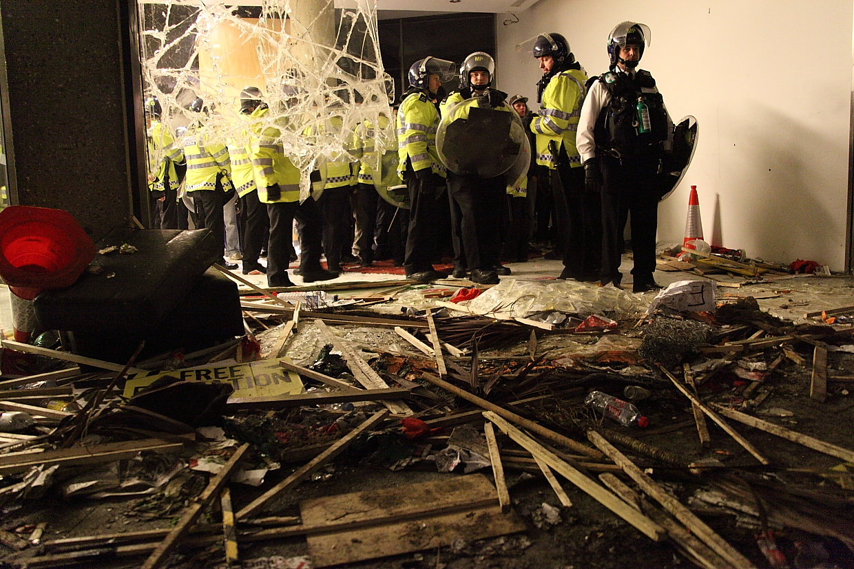 The reception area in Millbank Tower ( Tory Party HQ - amongst other organisations) following the student protests over the increase in tuition fees. 10 November 2010