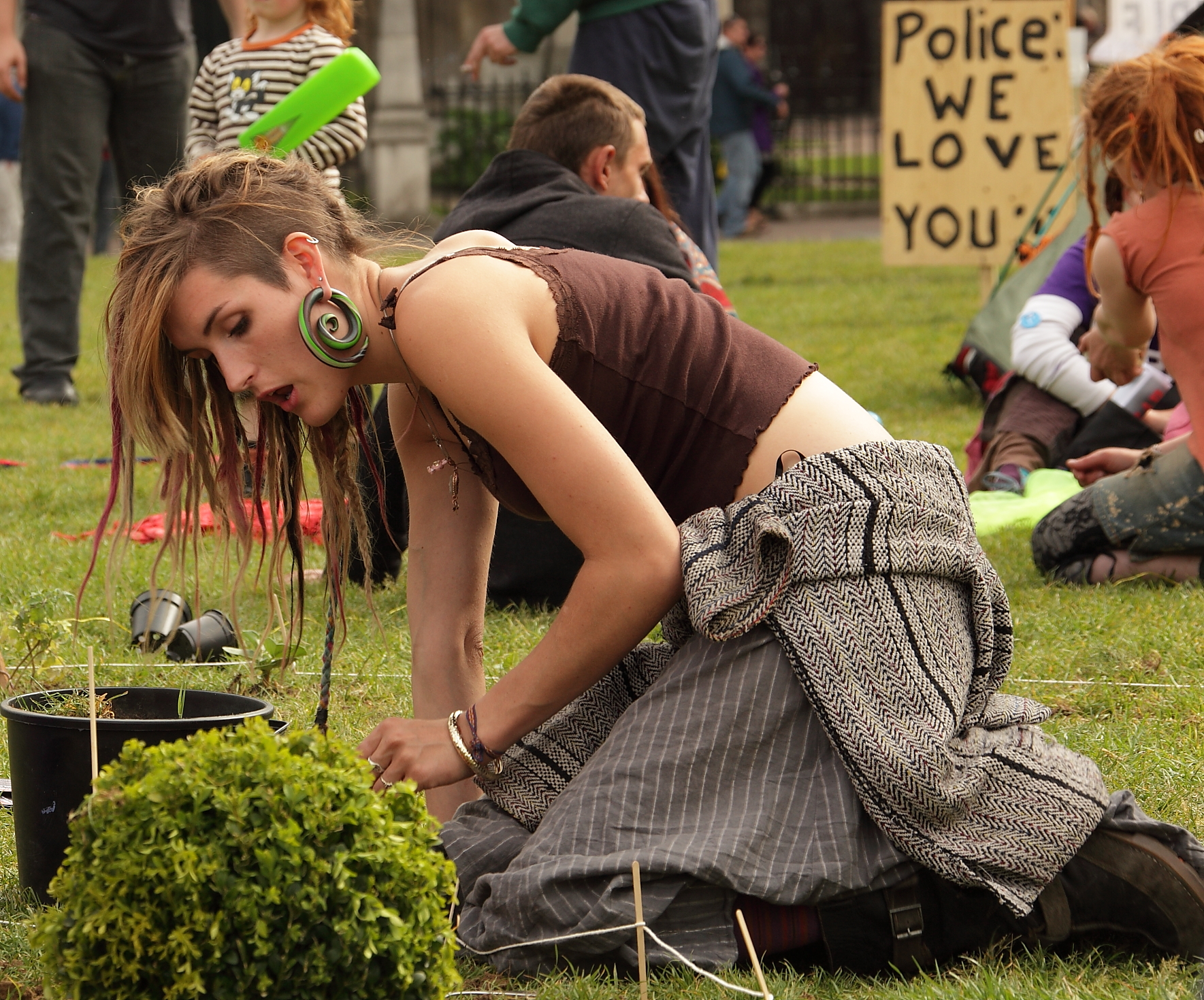 The Democracy Village was set up in Parliament Sq during the May Day event - some of the area was used for gardening activities. 15 May 2010