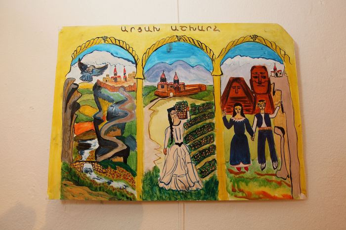 The photographs were also supplemented by paintings from people who were being treated at the Rehabilitation Centre ; they had created some fine pictures, colourful and vibrant, beautifully capturing aspects of life and symbols of Artsakh.