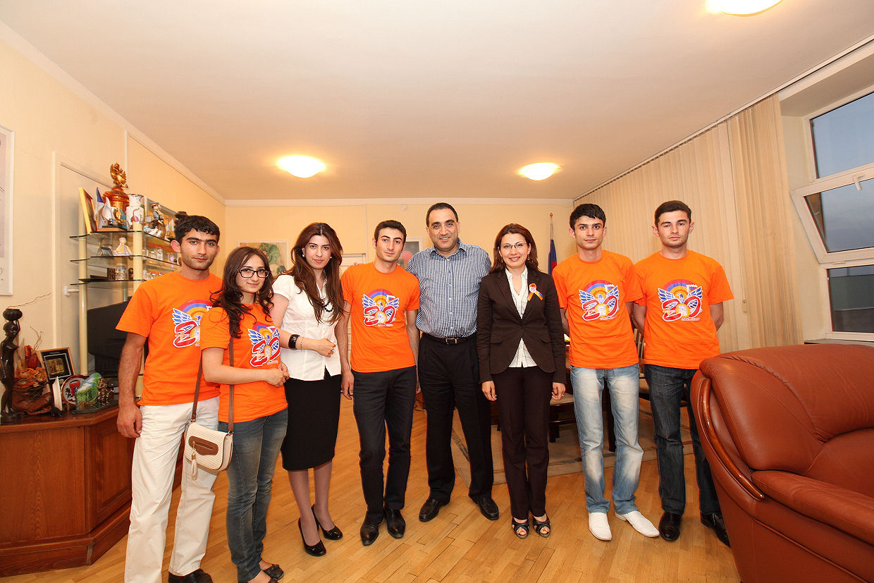 It was expected that the meeting would last a few minutes to exchange pleasantries, and formalities, however Armen Darbinyan entertained a varied conversation with the students, and Susanna Petrossian, for over an hour, and the opportunity was taken to discuss further developments in “working together” on a number of different fronts including student exchange programmes, and teacher training courses.